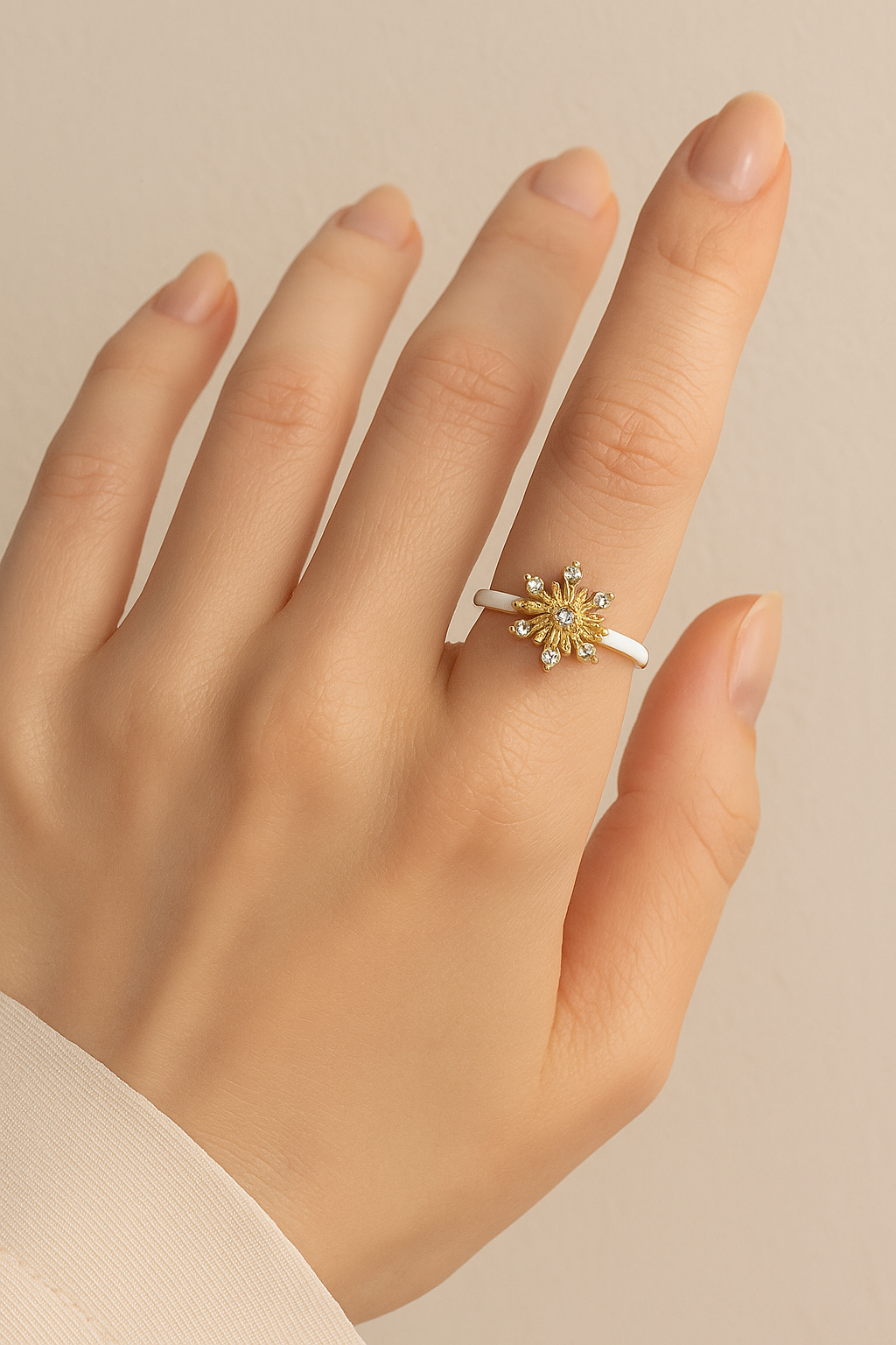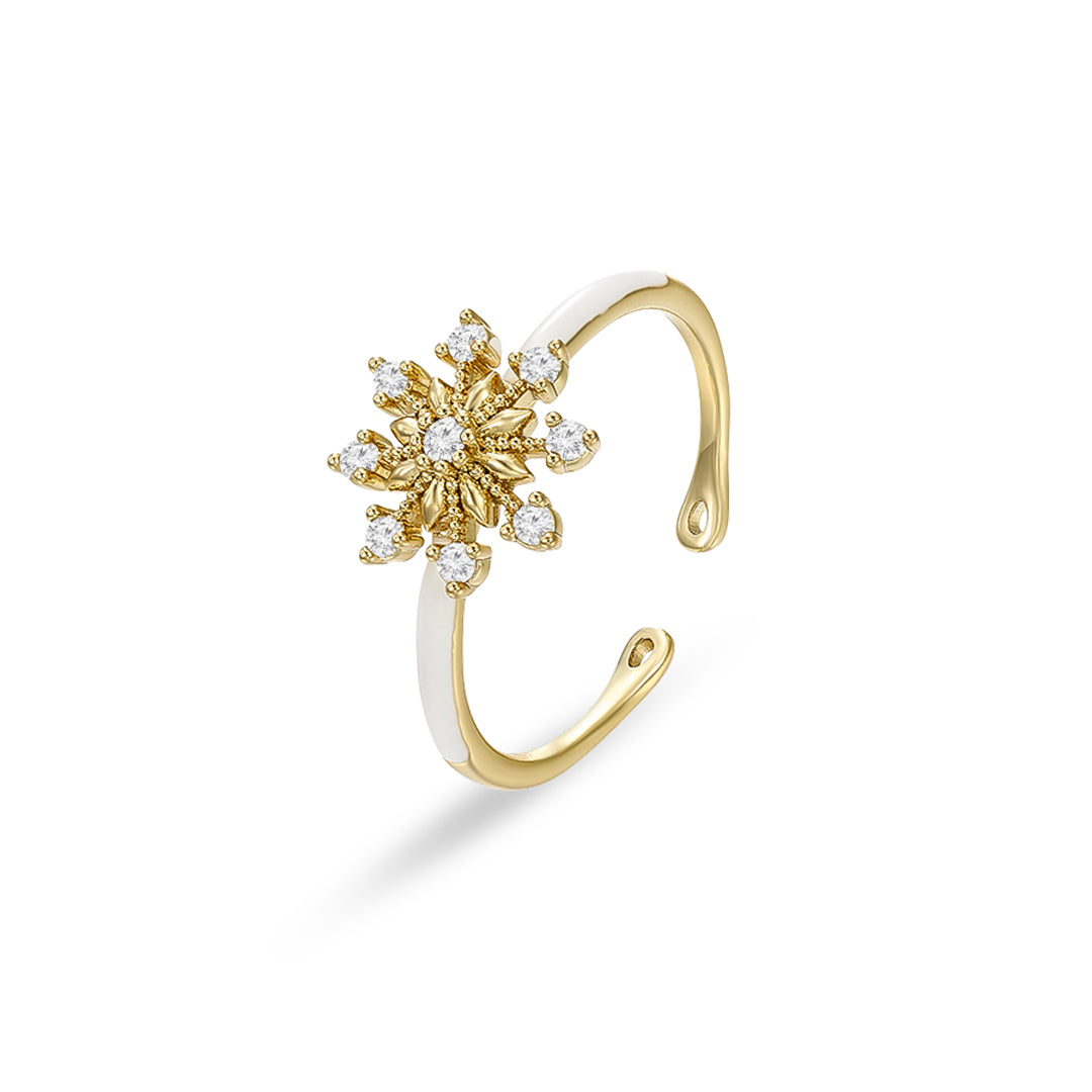 Description: Gold snowflake adjustable ring with crystal accents — a chic winter accessory and perfect holiday gift